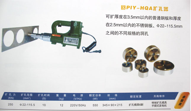 可擴(kuò)厚度在3.5mm以內(nèi)的普通鋼板和厚度在2.5mm以內(nèi)的不銹鋼板、Φ22-115.5mm之間的不同規(guī)格的洞孔