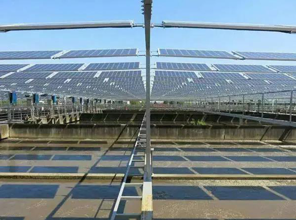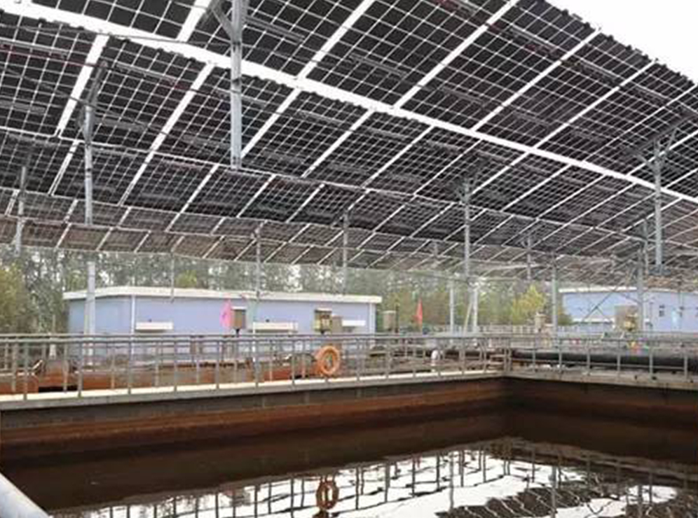 本來部分水處理池因其工藝需要,需要加蓋抑制藻類生長,在污水池上安裝光伏電池方陣與本身的加蓋需求相契合。根據(jù)現(xiàn)場條件和用戶需求,提供解決方案。